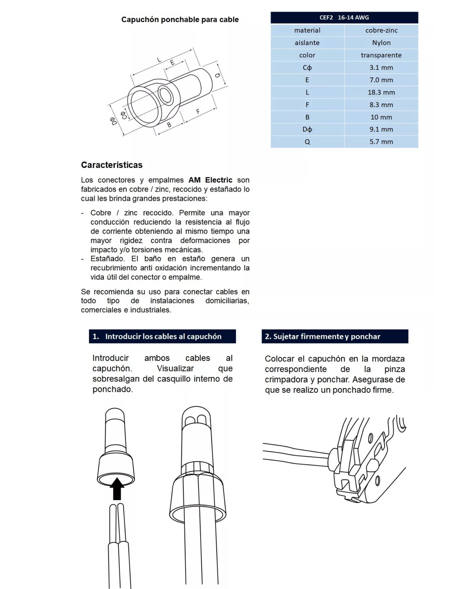 - Para cable calibre: 22-14 AWG