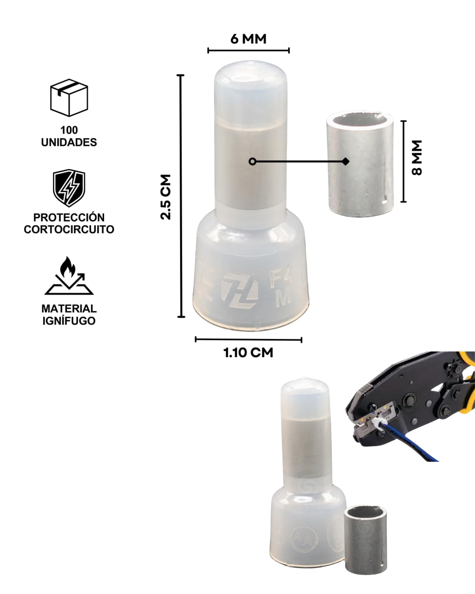 - Color terminal: Plástico transparente